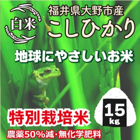 新米 【白米】 こしひかり 15kg 特別栽培米④ -地球にやさしいお米-